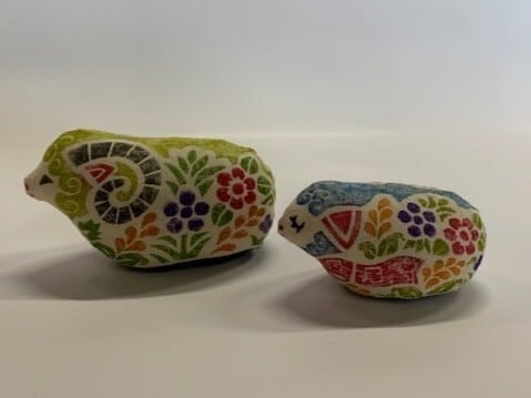素朴な生木綿に飛騨の伝統ある木版で染めつけ高温で色止めし、もみ殻を詰め、