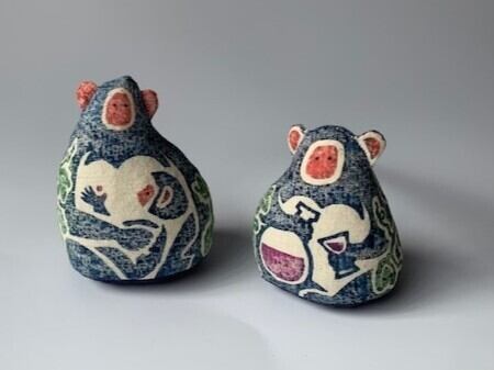 素朴な生木綿に飛騨の伝統ある木版で染めつけ高温で色止めし、もみ殻を詰め、