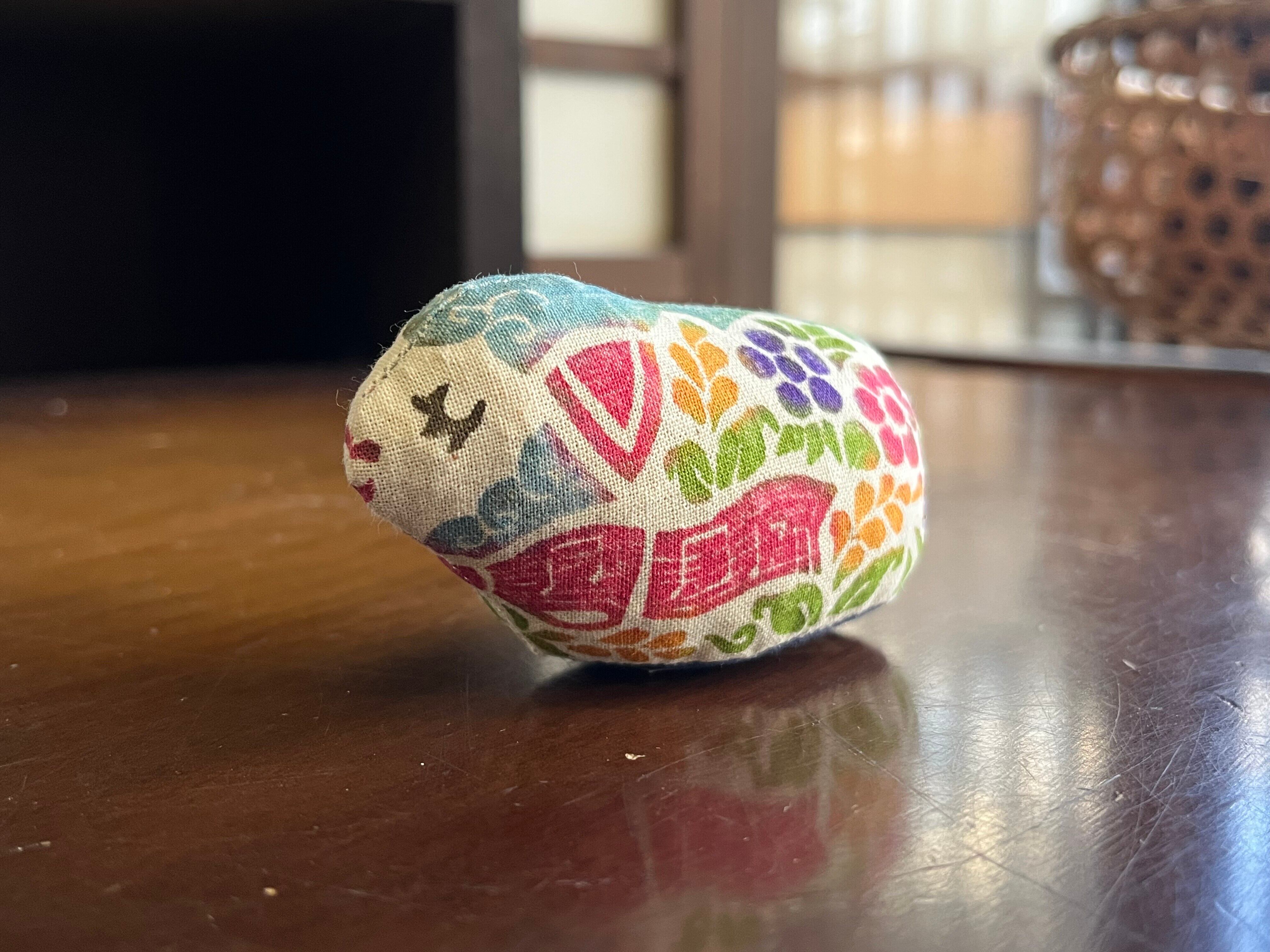 素朴な生木綿に飛騨の伝統ある木版で染めつけ高温で色止めし、もみ殻を詰め、